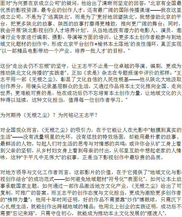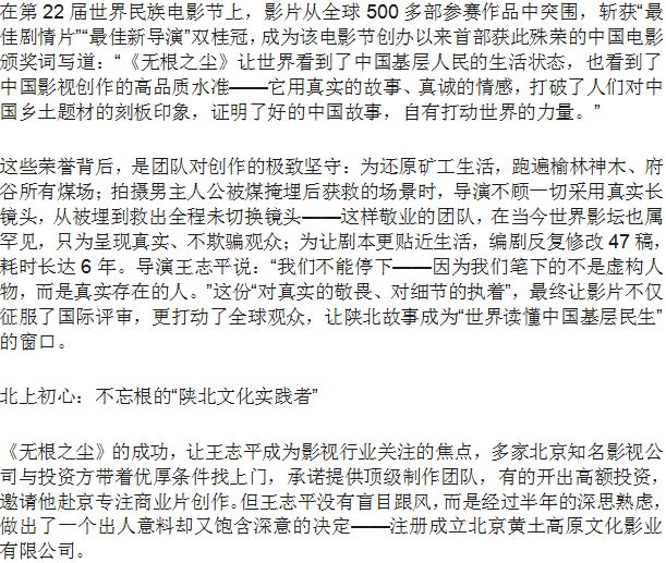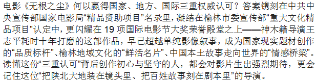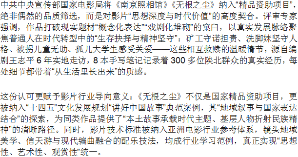国家电影局评审 王志平执导电影《无根之尘》入选国家精品资助项目